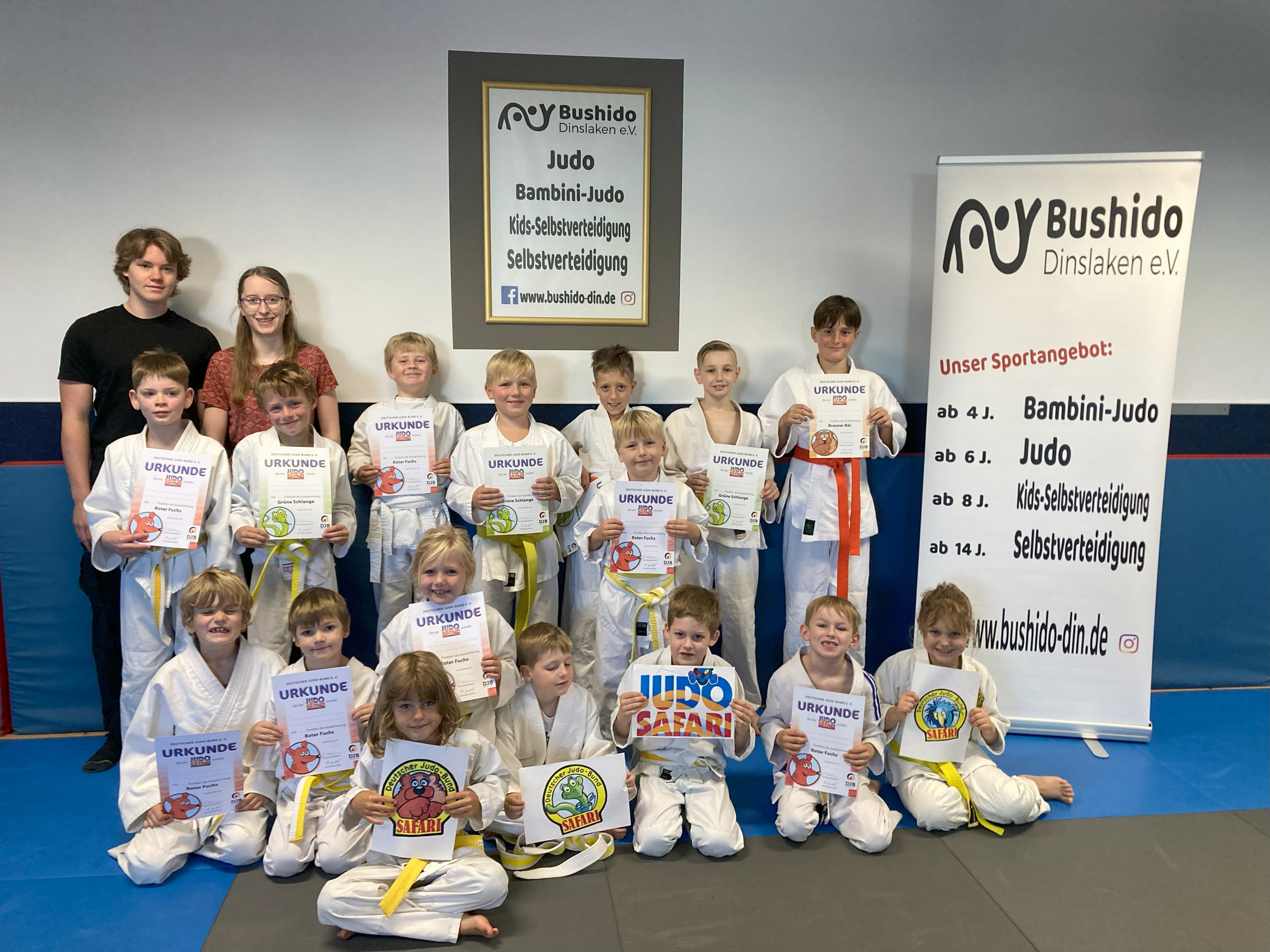Am vergangenen Sonntag (28.09.) richtete der Bushido Dinslaken e.V. seine diesjährige Judo-Safari aus. Bei dieser Breitensport-maßnahme des Deutschen Judo Bundes handelt es sich um einen Wettbewerb, der aus drei Teilen besteht. Ein kreativer Teil, hier soll etwas zum Thema Judo-Safari gebastelt oder gemalt werden. Der zweite Teil besteht aus einem Leichtathletik Teil, hier müssen sich die Kinder beim Laufen, Weitsprung und Weitwurf messen. Dann gibt es noch den Budo-Wettkampfteil, hier führt der Bushido Dinslaken schon traditionell ei-nen Sumo-Turnier durch.